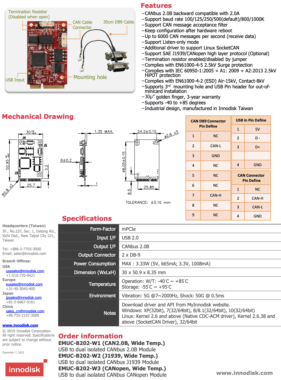 EMUC-B202-W1 (CAN2.0B, Wide Temp.)